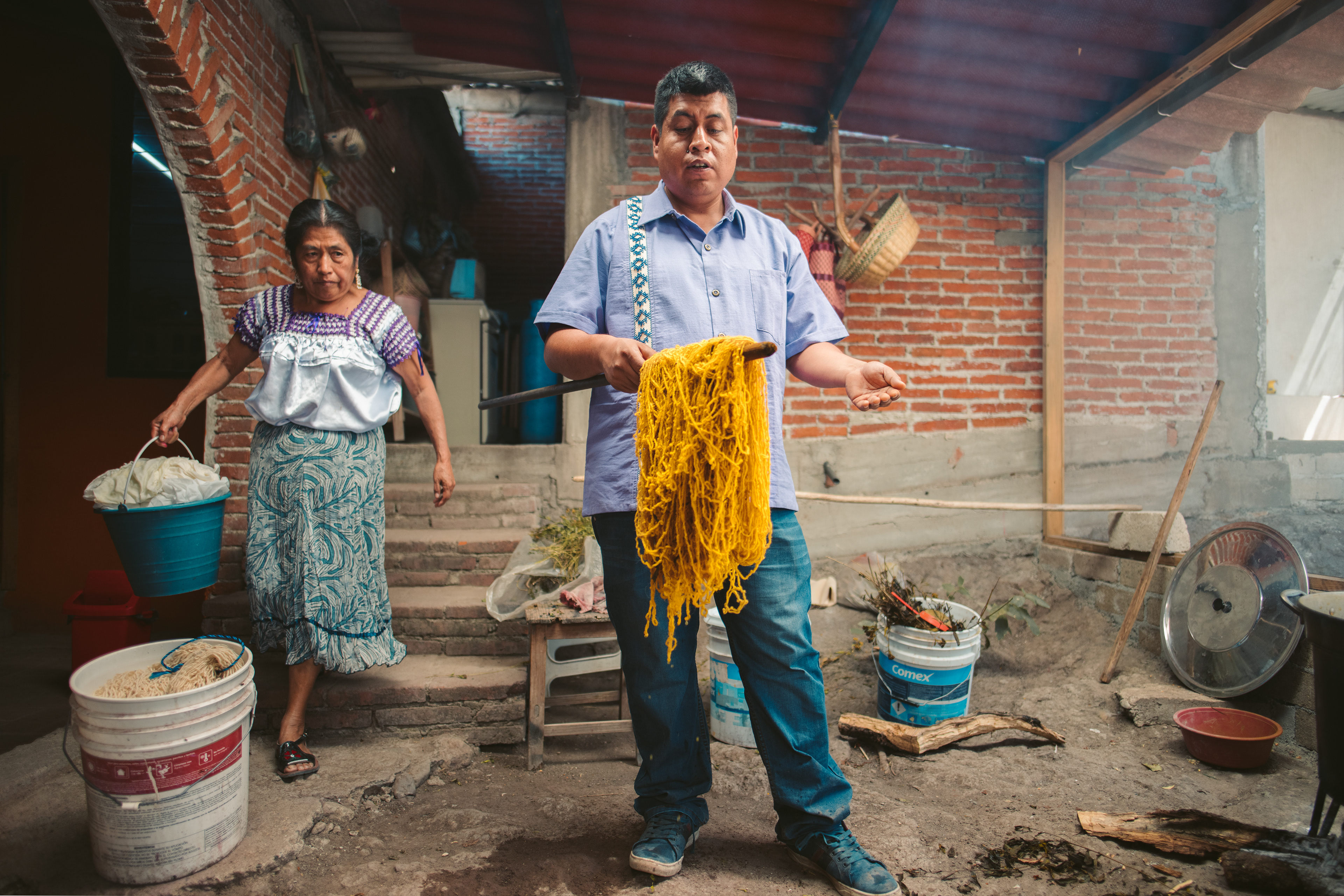 Dona Josefina invited us to her home to observe and learn the process of traditional textile production. She showed us the steps to weaving and creating dye from natural fruits and plants. Dona Josefina has taught her son and daughter in law the works and now has her family working with her, including her 80-year old mother. She has faced challenges from her town's community leaders throughout her journey of starting and maintaining a woman-owned company, but she admirably surpasses them all with dedication and perseverance.